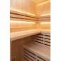Bois d’épicéa du Canada, éclairage LED apaisant et grande surface vitrée pour une sensation d’espace et de sérénité.