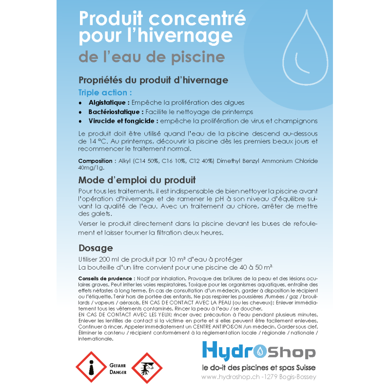 Protégez efficacement votre piscine pendant l’hiver grâce à notre formule concentrée à triple action :